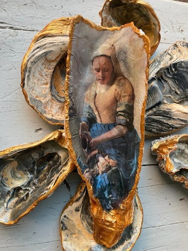 U bekleedt, verft en vernist, naar eigen inzicht, een prachtige schelp. Het resultaat gaat in een mooie lijst en u heeft misschien een mooi cadeau voor de Sinterklaas?
