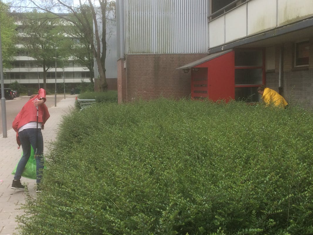 Met 2 bewoonsters samen de zakken en papier grijpers geregeld en…opruimen. In de hoop dat bewoners zich aansluiten…. Maar nee, in dit geval pech, het weer was niet uitnodigend die vroege voorjaarsdag. Zie foto.
