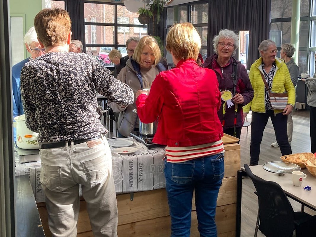 Wat een fantastische dag was het en wat hebben de wandelaars geboft met het prachtige weer. Met 106 deelnemers, jong en oud, werd op 23 maart de Lenteloop gewandeld via een mooie route door Heemskerk. Onderweg kon er gepauzeerd worden met koffie/thee en lekkers bij de scoutinggroep Helen Keller en bij terugkomst kreeg iedere deelnemer een heerlijk vers gemaakte soep naar keuze en een “medaille”. De jongste deelnemers konden een paasmandje knutselen en chocolade eieren zoeken.
