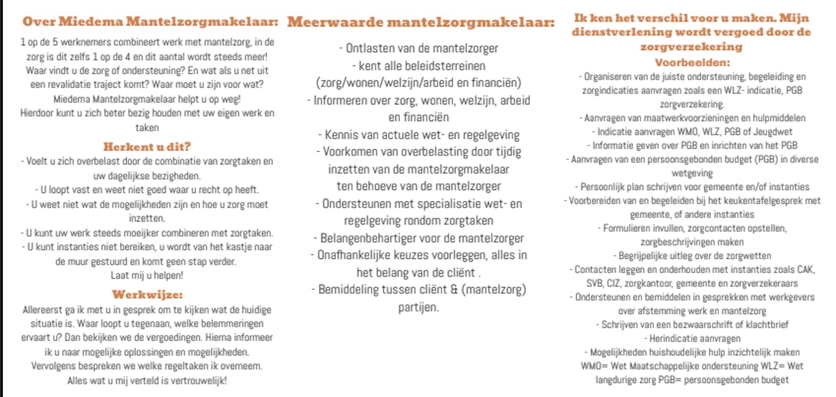 Nieuwe folder van Miedema Mantelzorgmakelaar