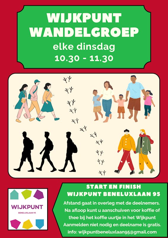 Wandelen is goed voor lijf en hoofd en ook een gezellige activiteit om samen te doen. Op dinsdagochtend vertrekt vanaf het Wijkpunt aan de Beneluxkaan 95, om half 11, een groep wandelaars de buurt in. In overleg met de deelnemers wordt er een route en afstand gekozen door Oosterwijk en omgeving. Na afloop kunt u aanschuiven voor een bakkie bij het koffieuurtke in het Wijkpunt. Wandelt u volgende keer ook mee? Deelname is gratis en aanmelden niet nodig.