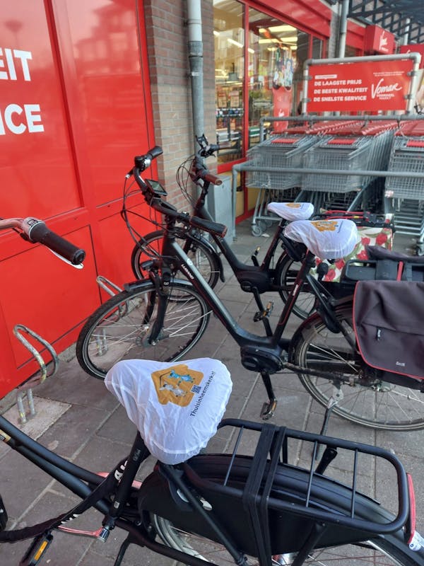 Heb jij ze al gespot? De vrolijke zadelhoesjes met het logo van Thuis in Heemskerk duiken steeds vaker op in de straten. Een kleurrijke blikvanger op je fiets en een warm welkom van ons aan jou!
